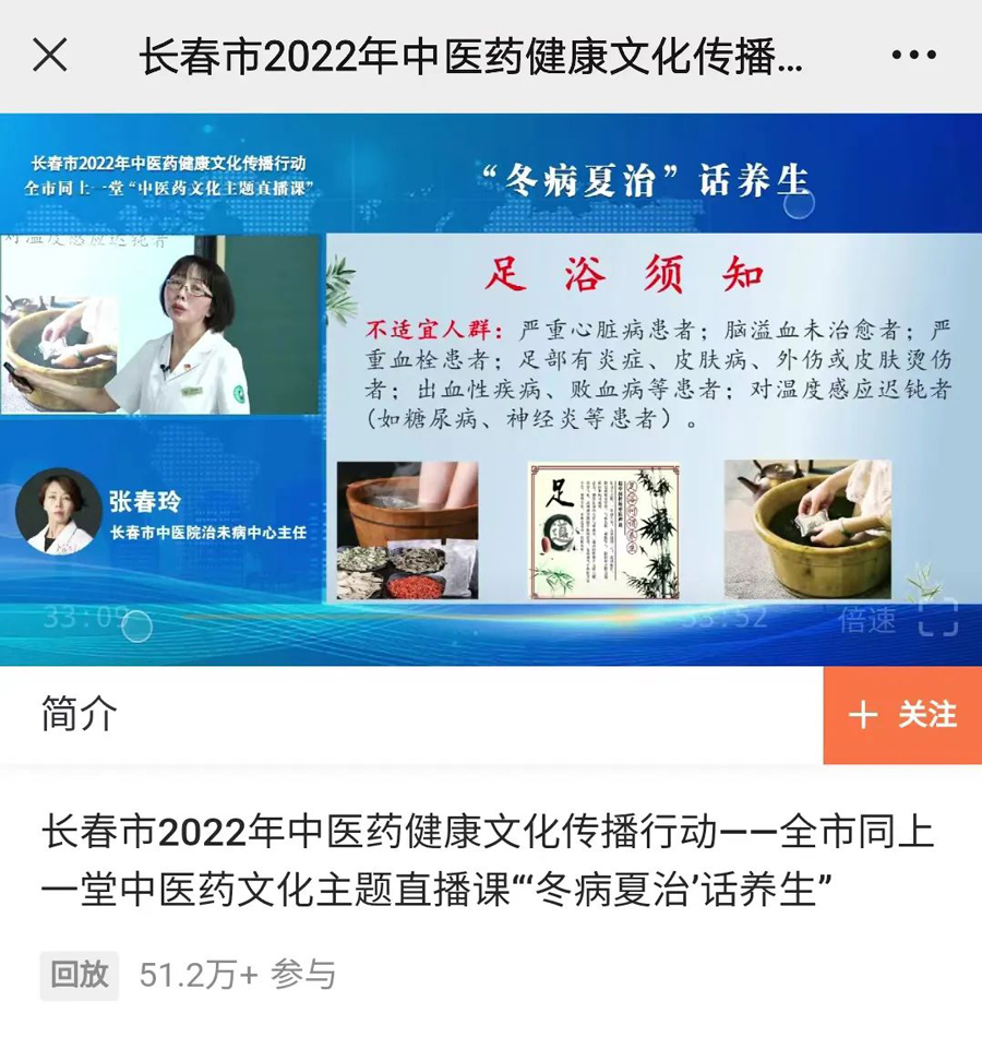 文化先行,促进服务提升。在院党委的正确领导下,全院上下将“我为群众办实事”主题实践活动落到实处。医院策划推出全市同上一堂“中医药文化主题直播课”活动,在线观看人数突破51万人次。同时启动“长春中医药答人网络知识大赛活动”,普及中医药健康养生知识、方法,传播中医药文化理念,19576名网友参与答题活动。