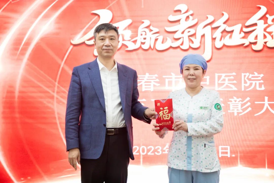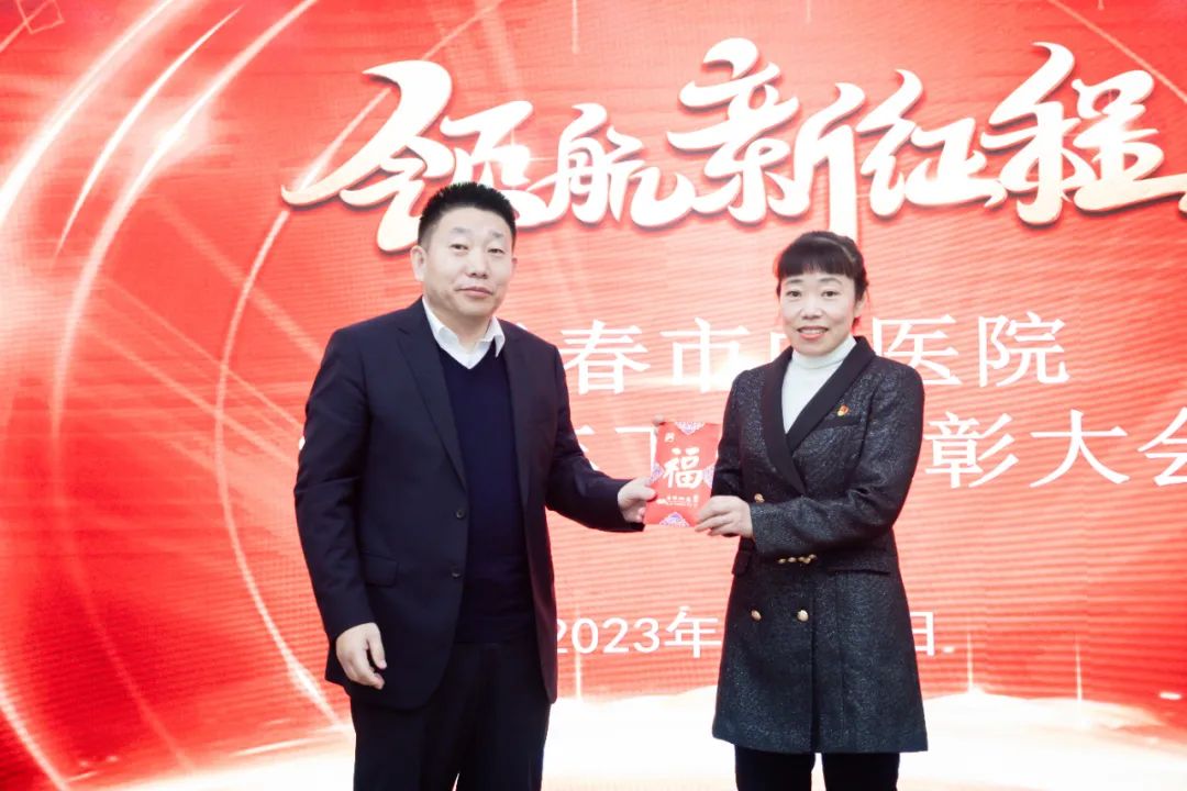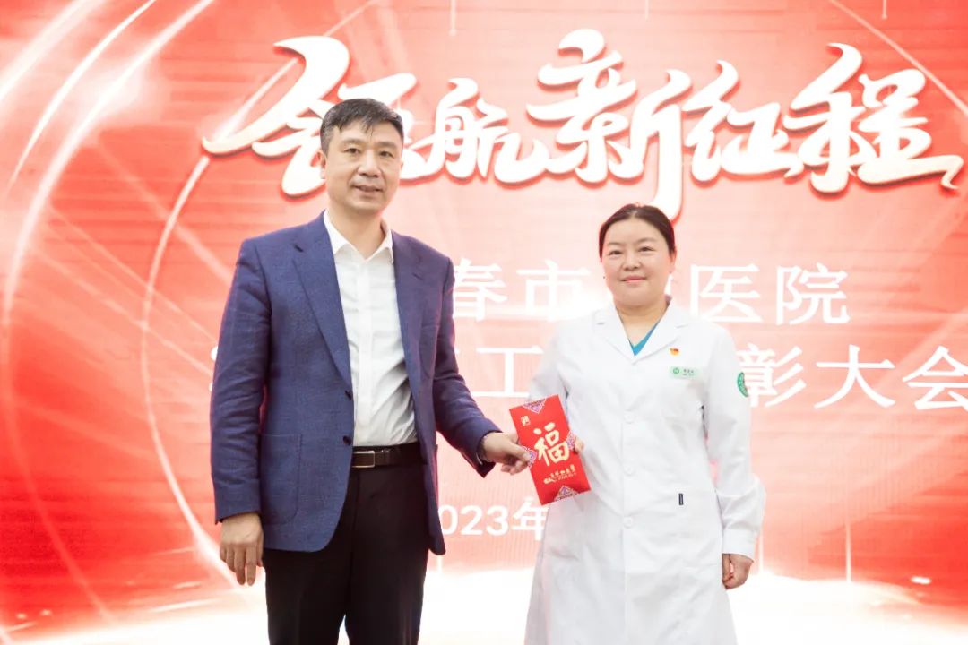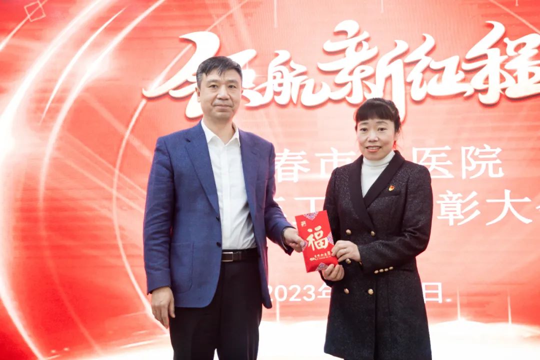 钱锐副院长、曹亚丽副院长为“2022年度医院优秀职工”代表颁奖