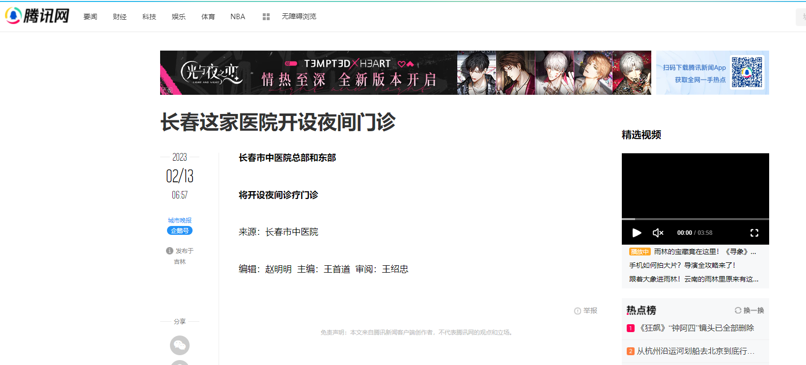【媒体看中医】多家媒体报道:红桃视频 开设夜间诊疗门诊