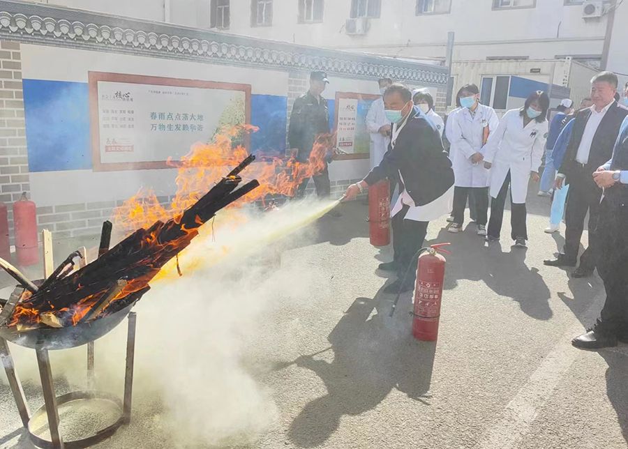 会后,保卫科、总务科邀请的消防安全方面专业老师为大家进行了安全消防知识讲座。应急逃生演练活动结束后,老师还为在场医护人员示范如何正确使用灭火器。医护人员在老师的指导下,使用灭火器进行了灭火实操。