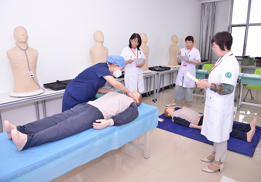 据了解,本次医师急救技能大赛内容涵盖心肺复苏术、电除颤、气管插管、针灸等内容。医院各临床科室积极响应,踊跃报名,共有23名医生参加比赛。为确保比赛在赛出高质量、高水平,医院抽调三个院部9名科室科主任担任评委。