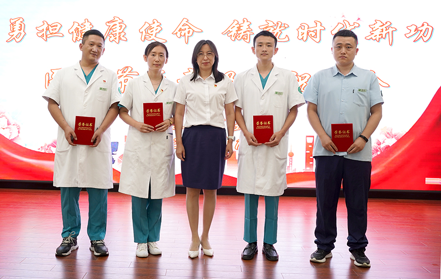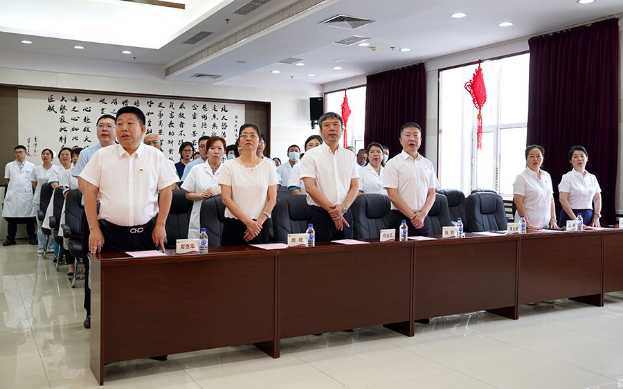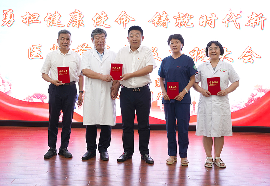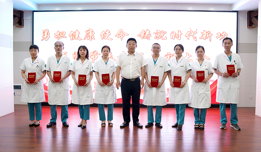 为庆祝第六个中国医师节,进一步团结凝聚广大医务工作者,在新时代新征程上不断奋进,8月18日下午,红桃视频 召开“勇担健康使命 铸就时代新功”医师节表彰及庆祝大会。红桃视频 党委副书记、院长石贵军,党委副书记周艳,副院长杨启光、钱锐、曹亚丽,纪检书记王妍,总会计师桑玉梅以及老专家代表和医师代表出席大会。