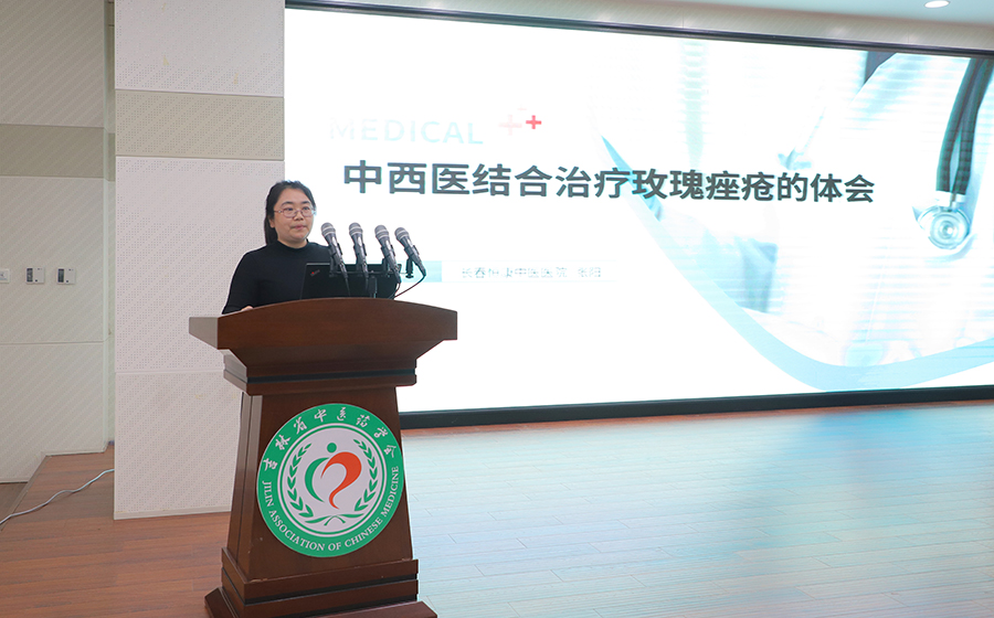 长春恒康中医医院皮肤科疗区主任张阳为大家带来了以《中西医结合治疗玫瑰痤疮的体会》为主题的报告。