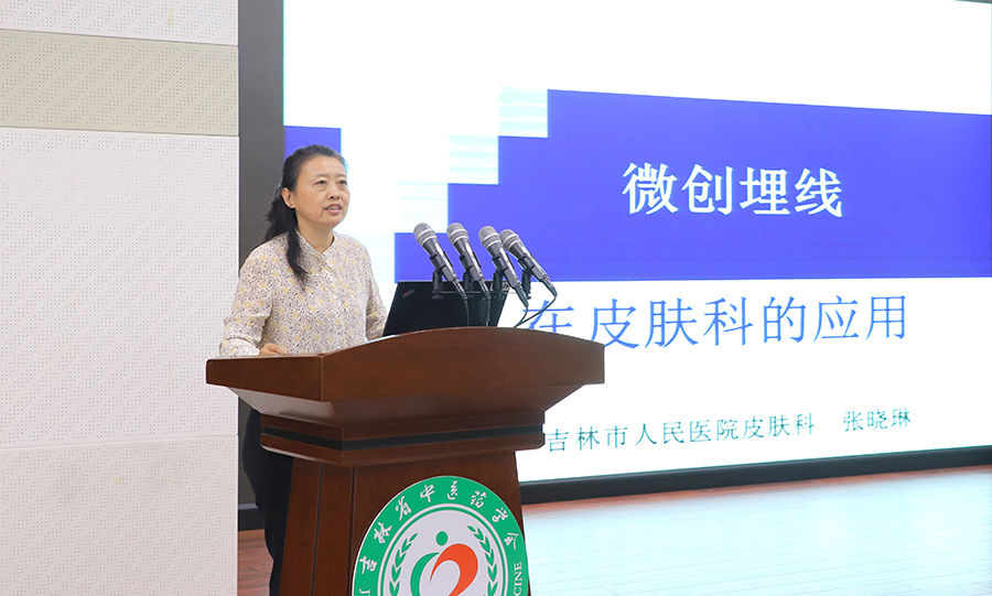 吉林市人民医院皮肤科主任张晓琳在会上和大家共同探讨了以《微创埋线在皮肤科的应用》为主题的相关内容。