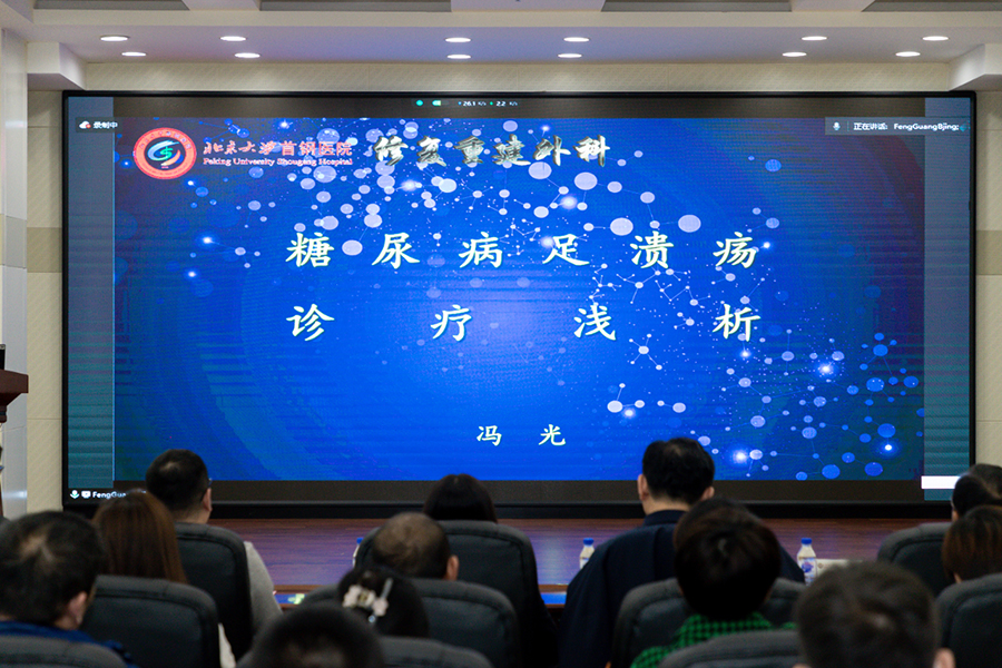北京大学首钢医院冯光教授在线上带来了《糖尿病足系统诊疗浅析》,介绍了影响糖尿病足病变的关键因素与主要原因,并就多学科协作综合治疗中使用的设备进行详细介绍。