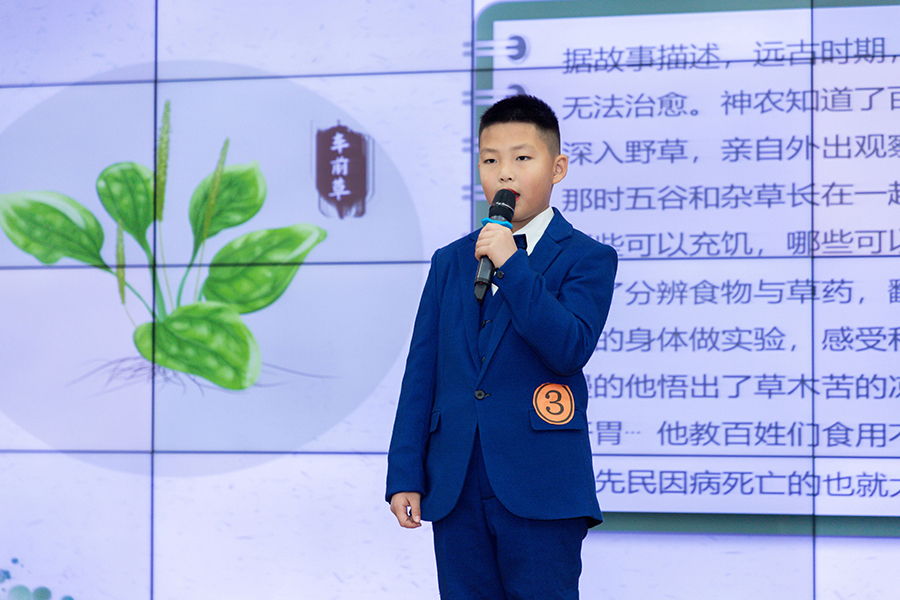 ▲3号选手杨恩洋进行了《神农与中药》的演讲