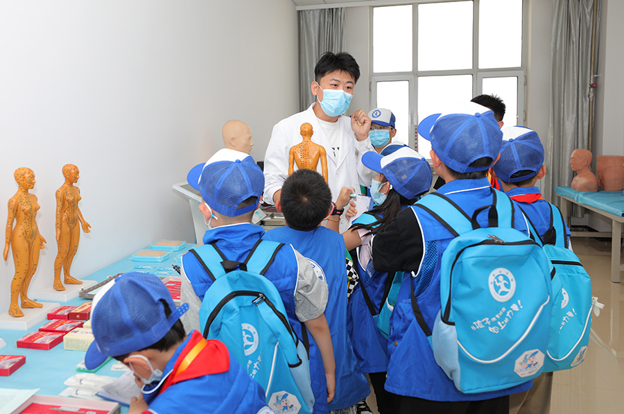 最令大家期待的,就是总部13楼实训中心了。小记者们分为3组,在护理实训室,他们学习了人体经络和护理急救技能;在中药浸渍标本室,他们学会了辨识各类中药材和草药标本;在针推实训室,他们揭开了中医特色疗法的神秘面纱。
