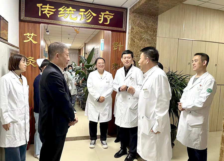 随后,石贵军书记、钱锐副院长走进传统诊疗科疗区,对疗区格局、医疗服务、疗区发展等方面给予了指导和部署。希望传统诊疗科深挖中医药宝库,不断创新和完善诊疗手段,让科室在中医药特色服务领域再上新台阶。
