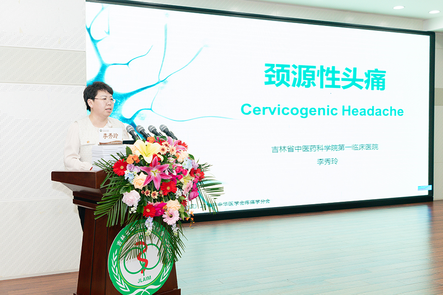 ▲吉林省中医药科学院第一临床医院副主任李秀玲讲解了《颈源性头痛的诊治》发病机制与诊疗经验。