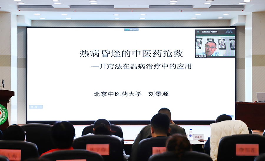 国家级名老中医、北京中医药大学教授刘景源通过线上,以视频会议的形式为大家讲解了“热病昏迷的中医药抢救”的要点,分享了中医药在热病昏迷抢救中的独特作用。