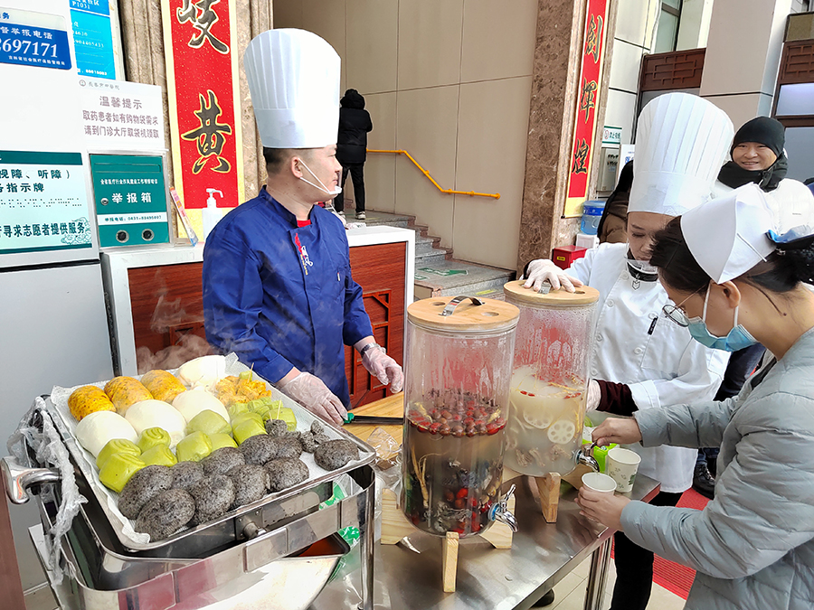 此外,总部还在现场展示了膏方熬制的整个过程,邀请在场群众免费品尝新鲜出炉的膏方及中药代茶饮“理中养仁汤”“益智理中汤”。同时,东部和平阳部两个院区也准备了“秋冬养生茶”“五行养生汤”“养生面点”等中医特色美食,让群众吃出健康、吃出特色,又为“舌尖上的健康”提供了新的选择。