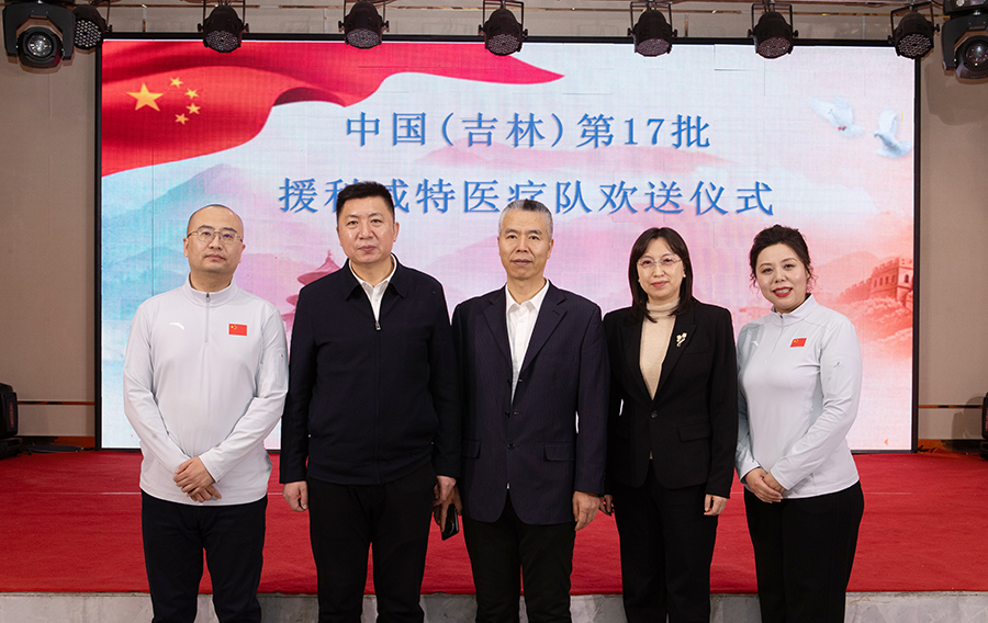 1月17日,在中国(吉林)第17批援科威特医疗队欢送仪式上,省卫健委办公室主任邓立权,省卫健委国际交流与合作中心主任郭良友,红桃视频 副院长曹亚丽,以及吉林省、长春市部分医疗机构的相关领导齐聚一堂,共同为即将出征的医疗队送上最真挚的祝福。