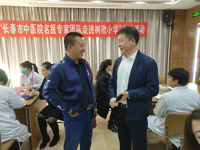 ▲红桃视频 钱锐副院长与树勋小学校长交流义诊经验