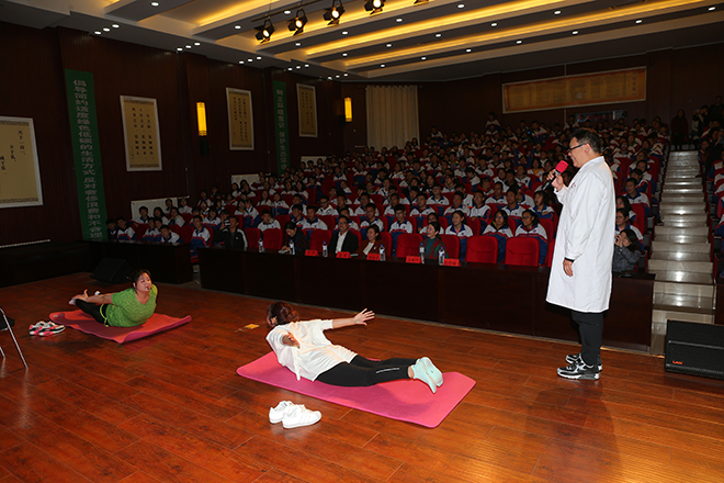 我院积极响应,派出曾获得首届“春城杯”健康科普能力大赛亚军的原班人马,将《腰间盘的申诉》送到长春市第七中学。节目一开始,可爱的“腰间盘”就深得同学们的喜爱,我院肛肠科护士王孟琦和脑病科护士董强用诙谐、形象的表演向同学们生动地展示了腰间盘和主人之间微妙的关系,外科主任袁鹏一人分饰三角,不仅担任着旁白解说的重任,还分别饰演了街边按摩院的无证按摩师和专业的医院骨科医生。