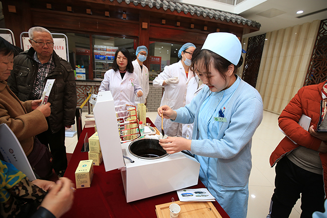 膏方是如何炼成的?都需要哪些辅料?活动现场,医院工作人员现场制膏引来众人关注。以温阳膏为例,它的出炉至少需要6个步骤:浸泡、煎煮、去渣沉淀、浓缩、收膏、包装。现场,制剂人员一边制膏,一边讲解全过程,而需注意的地方就更多了,比如去渣能保持膏方的好口感,更需要有丰富经验人员操作,比如在收膏的过程中,要将膏方熬至滴水成珠的程度,这份火候的拿捏是需要一定功夫的。活动现场,为了让大家即可品尝到新鲜出炉的膏方,工作人员现场熬制了两仪膏,这一剂补中益气、滋阴补血的膏方19分钟便从颗粒完成了变身。