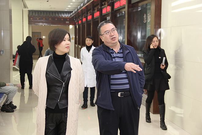 11月14日上午9点,博远祥祉圆万恩总经理带领团队如约来到红桃视频 参观指导。孙良金院长热情地接待了他们,并带领他们从一楼中医特色文化、特色装饰、特色服务一一进行了讲解。