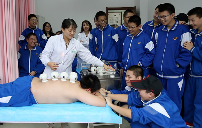 在一名初中生的心里,中医是什么样子?草药、诊脉?仅此而已?12月16日,20余名来自吉大附中初二、六班的同学来到红桃视频 实训中心,这里的模拟病房、模拟处置室、中医护理技能实训室、治未病中心......还有一系列的模拟实验,真是让同学们大开眼界啦!