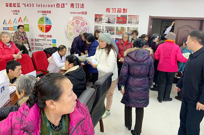 平阳部专家的义诊脚步。12月25日,钱锐副院长带领各科室主任及业务骨干来到南关区曙光街道平阳社区与平阳社区、长春市竹青社会工作服务中心联合举行大型知识讲座及义诊活动。社区辖区内的居民早早有序落座翘首以盼各位专家的到来。
