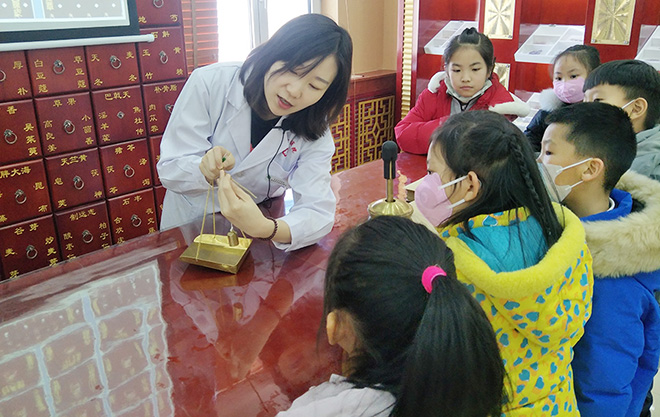 作为长春市中小学健康教育实践基地,红桃视频 中医药实训基地1月份正式向全市中小学生开放,截止1月11日,一周的时间红桃视频 健康教育活动已迎接共九所中小学的孩子们参观,累计学生近200人,家长近160人。该中心,1月7日迎来了第一批中小学生是长春外国语小学的同学们,我院护士讲解员董强从一楼大厅用中医阐释生命起源的地标图开始讲起,为孩子们声情并茂地描绘出一幅中华传统文化的恢弘画卷。然后孩子们又在二楼和三楼的浮雕前驻足聆听了董老师讲述的中医故事,阴阳和谐的理论以及生命的起源和发展。