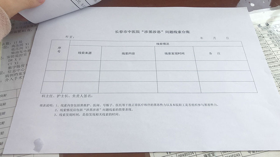 二是自检自查,深挖黑恶势力“保护伞”,确保排查到位。纪检监察室分两条线进行自检自查,一条线是将2017年1月至今受理的所有信访举报、案件查办和日常工作中各类举报、案件进行详细梳理排查,逐一逐件登记,由专人负责建立线索台账。另一条线是以科室为单位下发了《黑恶势力“保护伞”及涉黑涉恶腐败线索台账》,科主任、护士长在台帐上签字确认,逐一摸排本院职工是否存在黑恶势力“保护伞”及涉黑涉恶腐败等问题。经过认真排查,未发现黑恶势力“保护伞”线索。