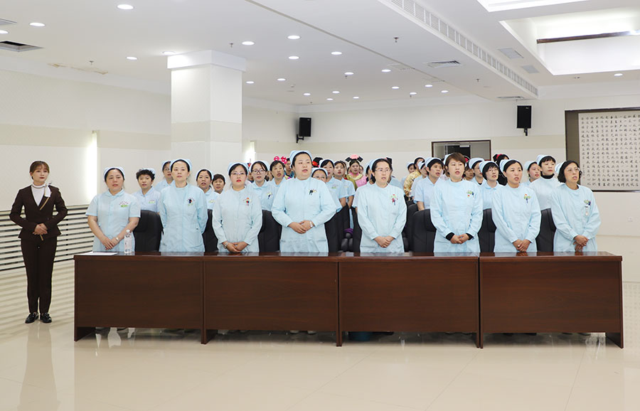 大会在高亢激昂的院歌声中拉开了序幕。护理部主任沙菲首先代表全体护理管理者,向奋斗在护理战线上的同志们送上了节日的问候!红桃视频 党委副书记周艳现场宣读本次大会表彰决定。