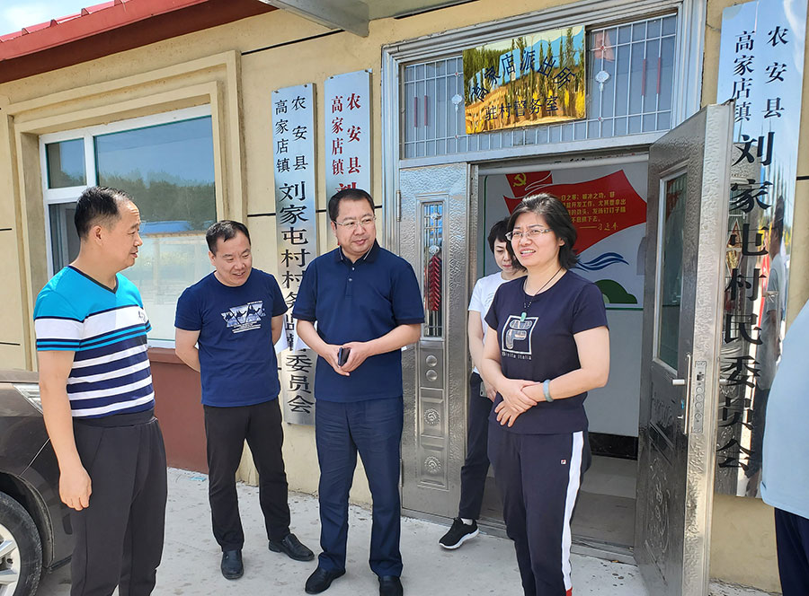 为认真贯彻执行长春市卫健委党组关于脱贫攻坚的工作要求,6月20日,红桃视频 党委副书记周艳、急诊科主任胡少红、机关支部负责人邱虹以及党办干事路宇一行人来到农安县高家店镇刘家屯村,送去党的温暖,开展包保帮扶工作。