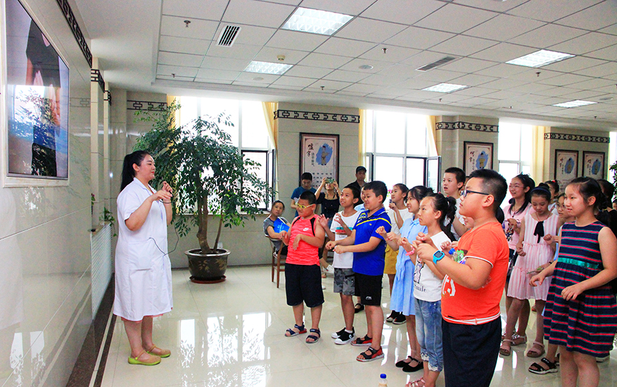 家长们听长春市名中医、治未病中心主任张春玲讲夏季如何养生,儿科医生手把手教授家长们如何为孩子做推拿,也让孩子们了解了手指操、针灸的功效。