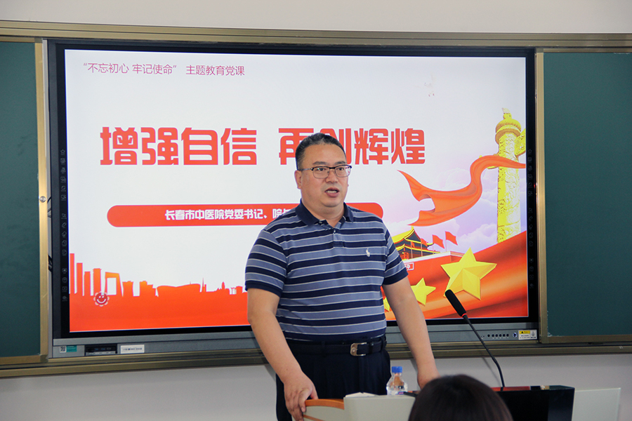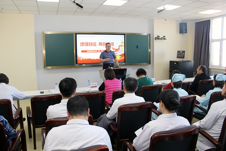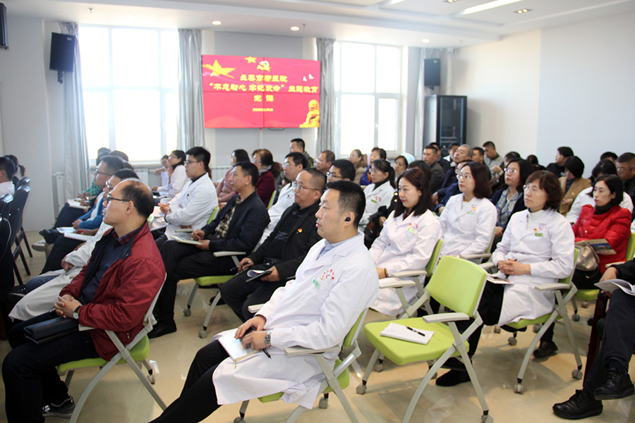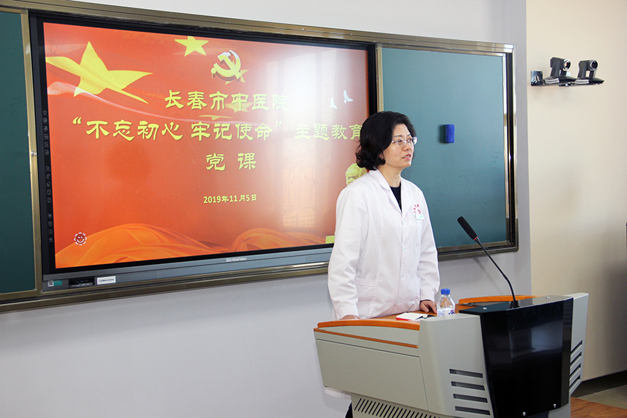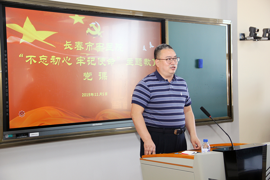 根据“不忘初心、牢记使命”主题教育活动的部署和要求,11月5日,红桃视频 党委书记、院长孙良金以《增强自信、再创辉煌》为题讲授“不忘初心、牢记使命”主题教育专题党课。长春市委第五巡回指导组副组长赵丽华、于海娜,长春市卫健委第二指导组副组长高宏飞、机关党委专职副书记徐淑芹到会并调研指导。院领导班子、党员、中层干部参会学习。会议由红桃视频 党委副书记周艳主持。