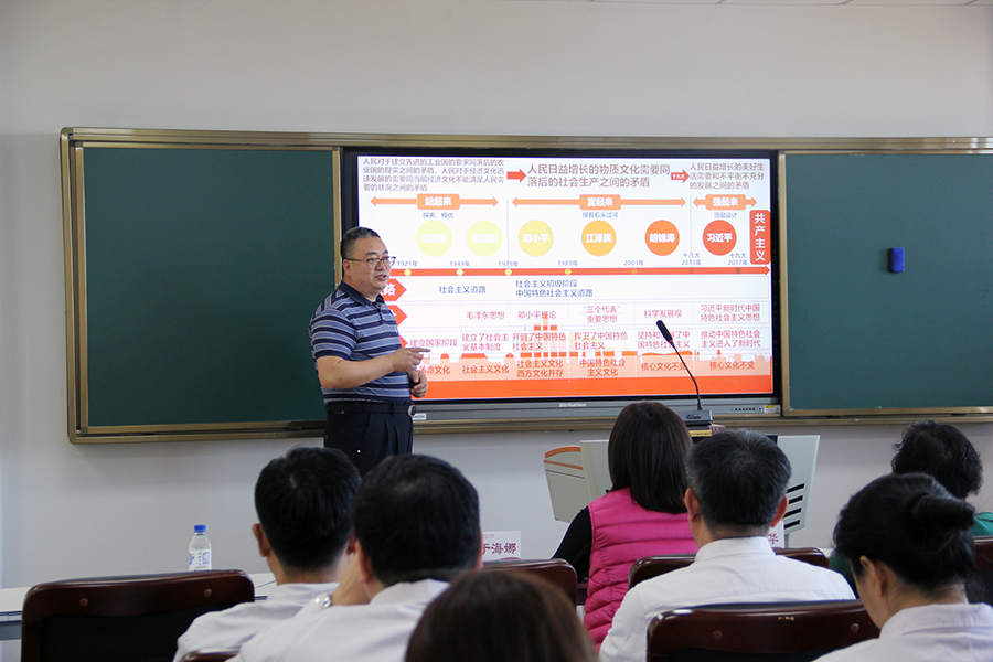 孙良金院长用图文并茂的形式,按照历史进程,对毛泽东思想、邓小平理论、“三个代表”重要思想、科学发展观、习近平新时代中国特色社会主义思想进行了详细地讲解,让在座的党员重温了我国坚定走社会主义发展道路的重要性。