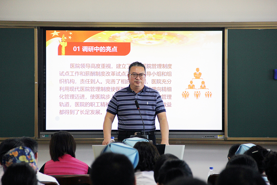 最后,孙良金院长以“不忘初心、牢记使命”主题教育调研成果,结合现代医院管理制度试点工作和薪酬制度改革试点工作进行概述。以制造飞机为喻,详细地阐述了医院“六化管理模式” 。孙良金院长表示,科学化、标准化、规范化、精细化、民主化、安全化,相互联系,相辅相成,使医院的管理从粗放式走向精细化。孙良金院长说,我们只有在党的领导下,坚定地走社会主义道路,走中国特色社会主义道路,走中国特色的中医医院发展道路,医院的明天才能更强大!他鼓励大家说,医院取得的成绩是和每一位成员密不可分的,希望大家为之自豪!