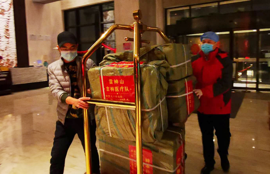 我所在疗区有15名医生,都是来自吉林省的各家医院,一个团队的人,大家彼此照顾,彼此打气,这让我觉得温暖。在进入病房前,会有人帮着穿好防护衣,然后拍拍肩膀说一句“注意做好防护,加油!”,即便下夜班的路上,遇到其他的医疗队,无所谓认识与否,都彼此送上一句鼓励,因为我们都是战友。