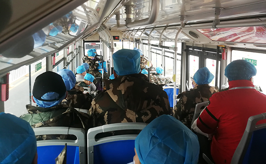 我们住的地方距离雷神山医院有18公里,班车单程1小时,凌晨1点下夜班2点坐上班车,3点才能回到住地,值班中一直忙碌在患者的各种诊治中,精神高度紧张,工作一旦停下来,困劲与乏劲就上来了,路上这一个小时,经常被我用来补充睡眠。