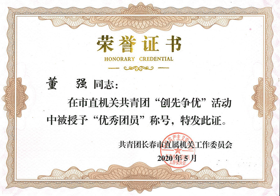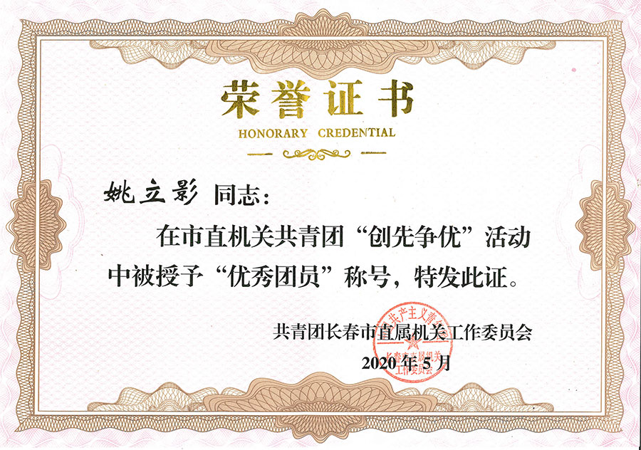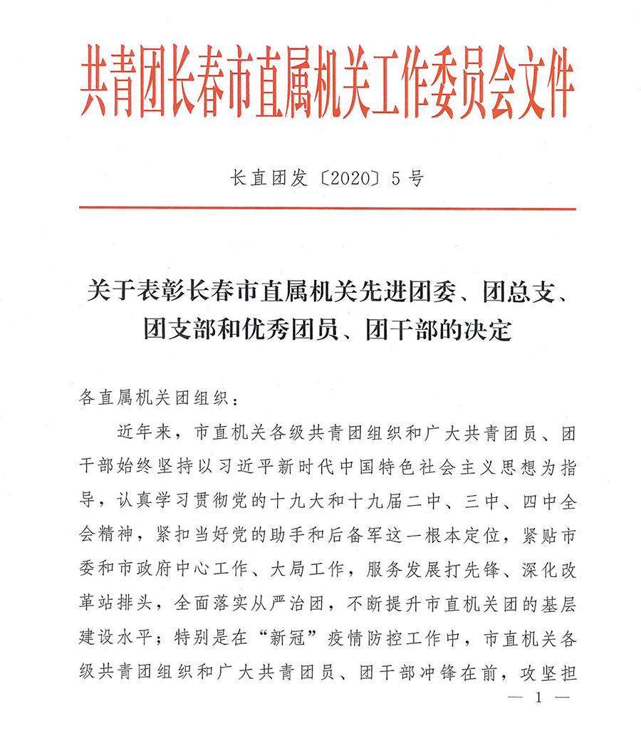 共青团长春市直属机关工作委员会表彰先进,我院榜上有名~