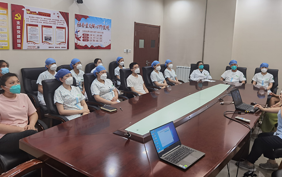 会前,各党支部组织党员重温入党誓词。会上,大家聚精会神地聆听着他们的抗疫故事,同时也在回忆自己的抗疫时光。一百天的奋战,中医人不畏艰难;一百天的奋战,中医人一路向前。面对突如其来的新冠肺炎疫情,医院党委带领全院党员干部职工白衣执甲,逆行出征,打响了疫情防控阻击战,让党旗在疫情防控斗争第一线高高飘扬。当战疫的冲锋号吹响时,医院党委先后派出30支医疗队共计1183人次参加抗疫工作,全力保障人民群众的生命健康安全,用行动践行“抗疫有我,中医力量”的誓言,经过大家的共同努力,圆满地完成了上级组织交给的各项任务,向党和人民交出了优异的答卷。