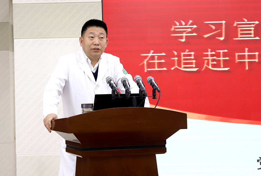 党用伟大奋斗创造了百年伟业,也一定能用新的伟大奋斗创造新的伟业。石贵军院长号召,全院党员干部职工要更加紧密地团结在党中央周围,牢记空谈误国、实干兴邦,在院党委的坚强领导下,坚定信心、同心同德,埋头苦干、奋勇前进,在追赶中医药高质量发展的征程上驰而不息,为全面建成社会主义现代化中医强院而团结奋斗!
