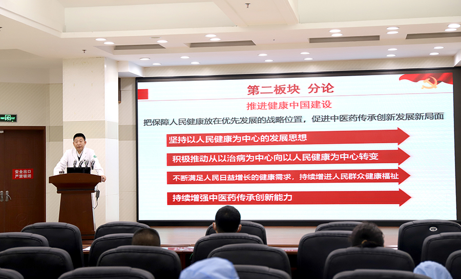 对于推进健康中国建设,石贵军院长阐述了二十大报告中的重要论述,即把保障人民健康放在优先发展的战略位置,促进中医药传承创新发展新局面。