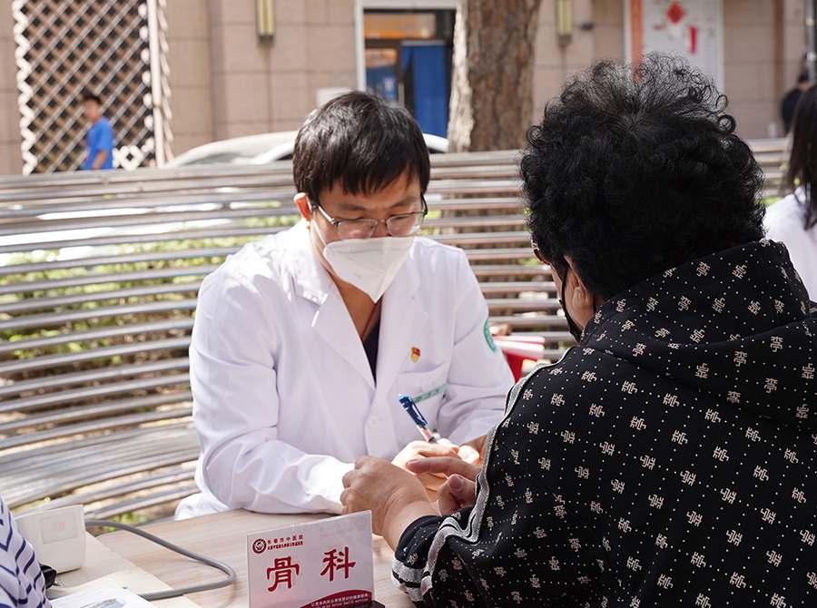 “高压140、低压70、心率76,阿姨请到相应科室的医生处排队义诊。”“这个药您要坚持服用,不能稍有好转就私自停用减量。”“根据您的身体状况,结合既往检查结果,需要加强有氧运动了。”专家们刚到现场,就被慕名前来义诊的居民包围,医护人员迅速就位,为大家诊脉、问诊、测血压……周艳副书记带领工作人员现场维持秩序、指引居民们就诊。