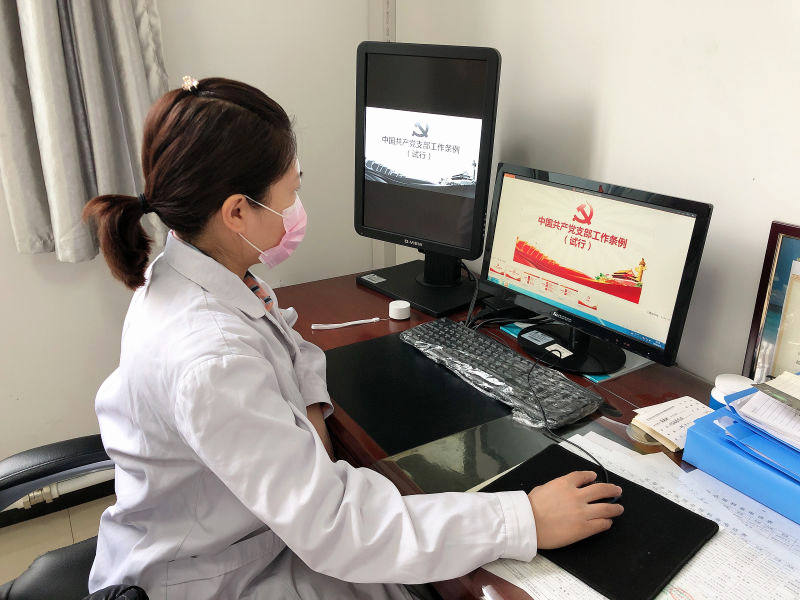 疫情期间,为贯彻国家疫情防控指示精神,疫情期间不集中召开大会原则,医院党委结合实际情况,利用《学习强国》平台,以及微信群视频会议功能,在网上集中上党课,通过线上学习、讨论和交流。医院领导班子身先士卒,以普通党员身份参加深入支部学习。疗区第一党支部、疗区第二党支部、疗区第三党支部、门诊第一党支部、门诊第二党支部、机关党支部、后勤党支部、东部党支部、离退休党支部结合本党支部的工作特点和当前抗疫形势,精心准备,理论联系实际,为党员们上了一堂生动的“云”党课。其中机关党支部的党员们共同重温了入党誓词,誓言铿锵有力,激情满怀,再次感受到了一名党员的初心和使命。