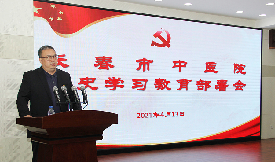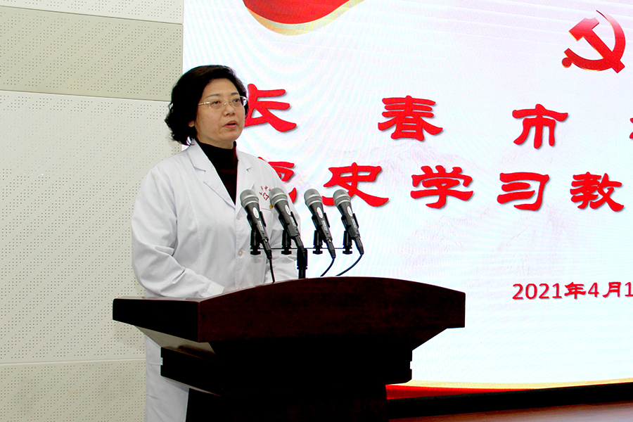 开展好党史学习教育是我们必须坚定扛起的政治责任。院党委要深化思想认识,把党史学习教育作为当前和今后一个时期的重要政治任务,精心组织、周密部署,立足实际、守正创新,确保学习教育推进有力、落实有效。开展党史学习教育,责任重大、意义深远,全院广大党员干部要坚持以习近平新时代中国特色社会主义思想为指导,牢记初心使命、传承红色基因,努力学党史、悟思想、办实事、开新局,为实现全面建设社会主义现代化中医医院的目标而努力,为建党百年献礼!