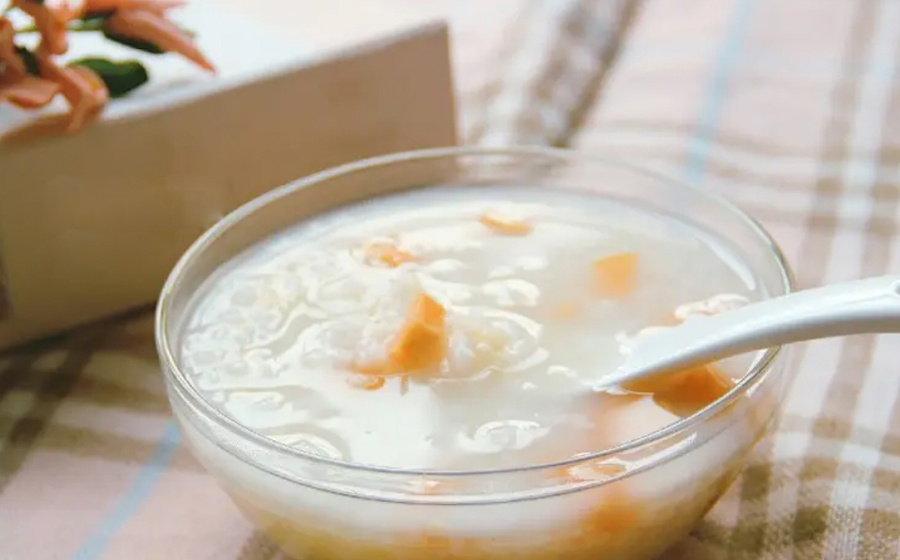 【做法】将土豆和山药削皮洗净,切成大丁备用。将粳米淘洗干净,放入砂锅里,煮开后加入土豆丁和山药丁,转用小火熬成粥,待粥将成时放入桂花酱、白糖即可。