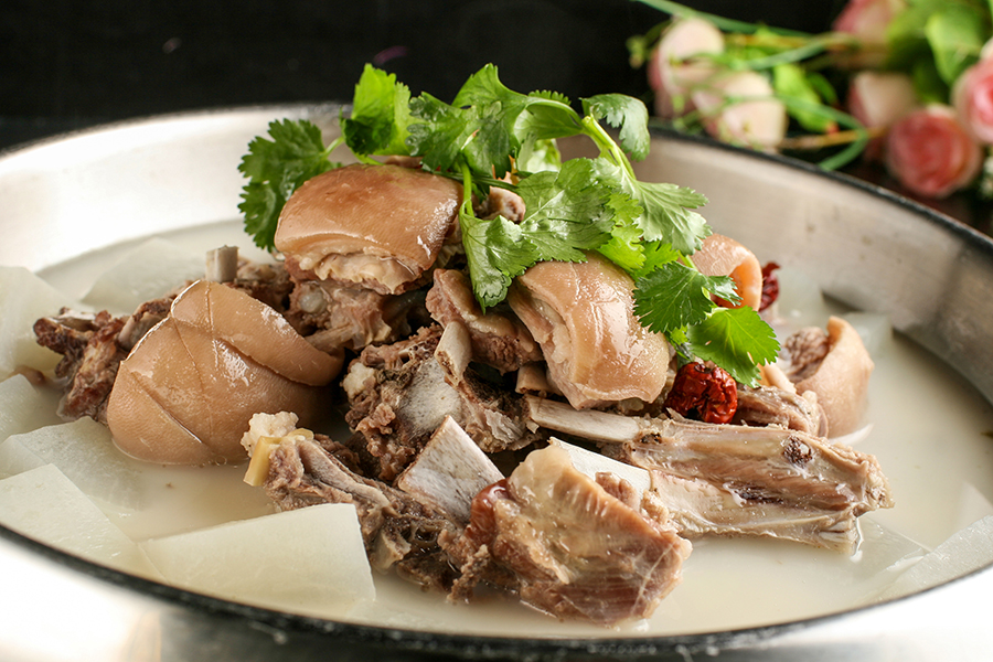 原料:白萝卜500克,羊肉250克,姜、料酒、食盐适量。