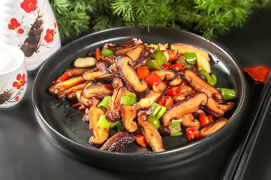 做法:香菇、鲜蘑洗净切片,炒锅烧热入油,下双菇煸炒后,放姜末、酱油、白糖、黄酒,继续煸炒,使之入味,加入鲜汤烧滚后,放味精、盐,用水淀粉勾芡,淋上麻油,装盘即可。