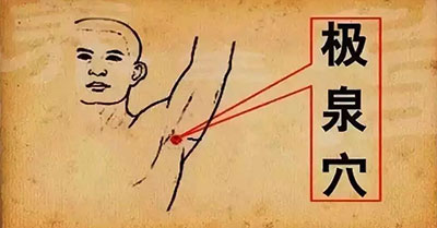 极泉穴位于腋窝顶点,腋窝中央腋动脉搏动处,是一个特别适合老年人的心脏保养穴“夏至”乃至整个夏季这段时间应多按按。极泉穴最好的按摩方式是弹拨,但弹拨时并非越用力越好弹拨的力度应柔和,动作应连贯,忌用暴力,每次弹拨的量应因人适宜,应该跟据自己目前的身体状况,适度弹拨即可,一般弹拨10次左右,经常弹拨极泉穴具有使气血流通的作用,因此可以宽胸理气,养护心肺。