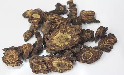 饮片:为类圆形、不规则横切或斜切片。表皮棕褐色至黑褐色,切面外侧棕褐色,木部黄白色,有的可见放射状纹理。体轻,质脆。气香,味微苦而辛。